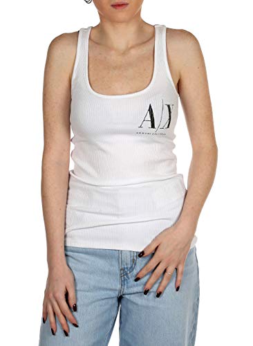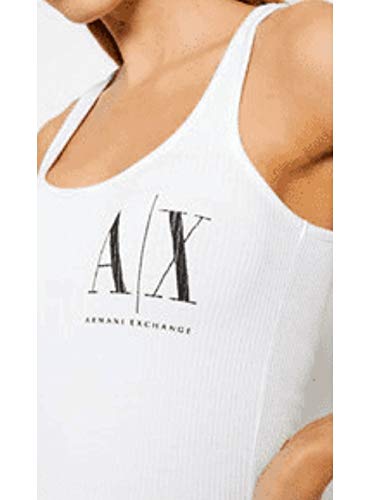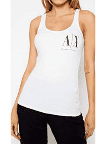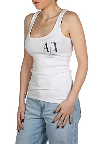 ARMANI EXCHANGE Icon Logo Tank Top Maglietta Cami, Bianco con Stampa Nera, XS Donna