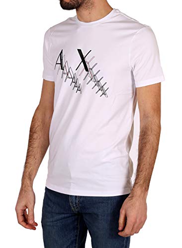 ARMANI EXCHANGE Maglietta a Maniche Corte con Logo Water Print T-Shirt, Bianca, XXL Uomo