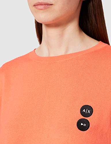 ARMANI EXCHANGE Maglione Girocollo con Logo Embroidered Patch Icon Play And Stop, Colore: Arancione, L Donna