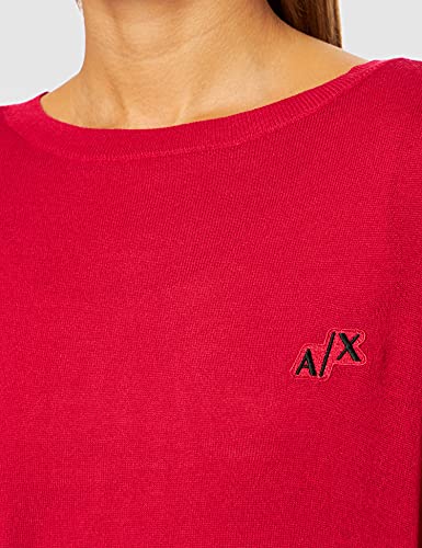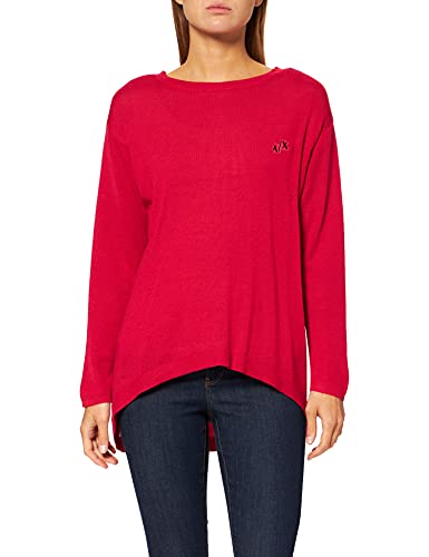 ARMANI EXCHANGE Deep V On, Relaxed Fit And Embroidered Logo Patch, Rounded Bottom, Longer At Back Felpa, Colore: Rosso, XS Donna