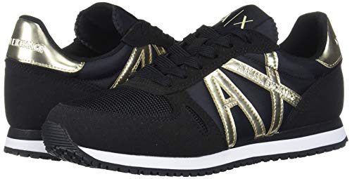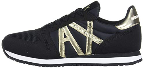 AX Armani Exchange Retro Running Sneakers, Scarpe da Ginnastica Donna, Schwarz Goldfarben, 39 EU