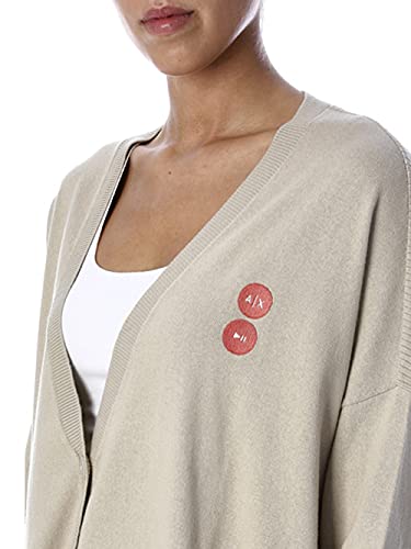 ARMANI EXCHANGE Logo Ricamato, One Button Closure, Dropped Shoulder, 3.4 Sleeve Cardigan Sweater, Beige, S Donna