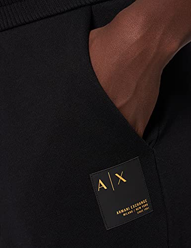 ARMANI EXCHANGE Lato Sinistro con Toppa Eco Leather Milano New York Gold Printed, Bottom Cuffs with Outline in Contrasto Pantaloni Track, Nero, M Donna