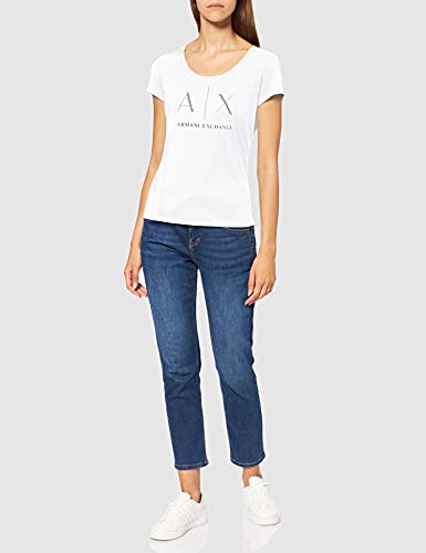 Armani Exchange Strass Logo Maglietta a Maniche Corte da Donna, Bianco (OPTIC WHITE 1000), S
