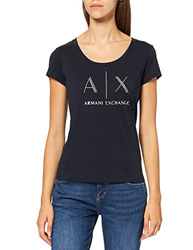 Armani Exchange Strass Logo Maglietta a Maniche Corte da Donna, Blu (NAVY 1510), XS