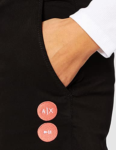 Armani Exchange Tessuto di Cotone, Doppia Toppa con Logo Pantaloni Casual, Nero, L Donna