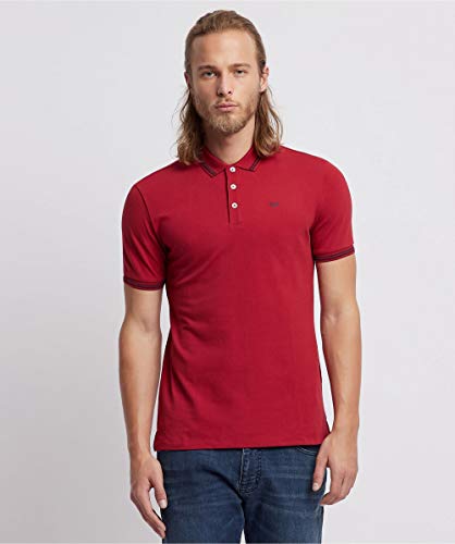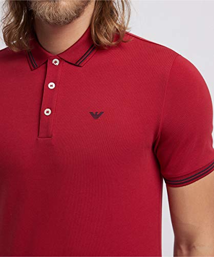 Armani Uomo Polo Pique in Cotone Doppia Punta Polo Rosso Scuro