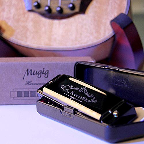 Armonica a Bocca, Mugig Harmonica Blues 10 Fori 20 Toni, C Key Coperta d'acciaio inossidabile colore nero classico, consegna con custodia, adatto per i principianti
