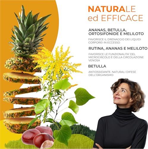 INGREDIENTI ATTIVI CONCENTRATI estratti fluidi: Ananas, Bromelina, Ortosifonide, Betulla, Meliloto ed ippocastano