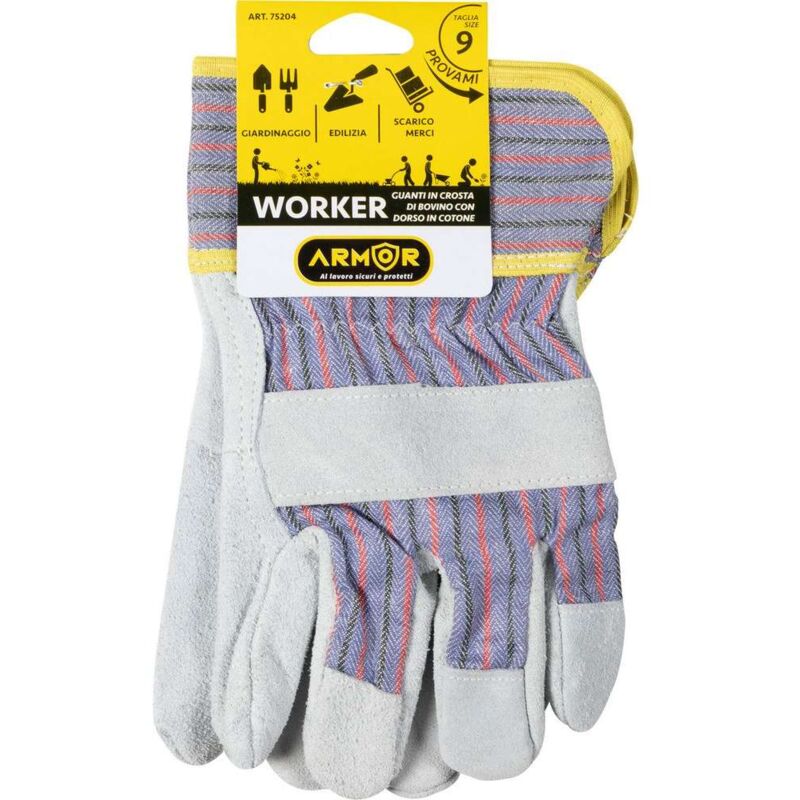 Armor propone i guanti Worker in pelle o crosta di bovino con dorso in cotone, taglia 9. Ideali per il giaridnaggio, l'edilizia e lo scarico merci.. Acquistalo subito da CFadda e ricevilo comodamente a casa.