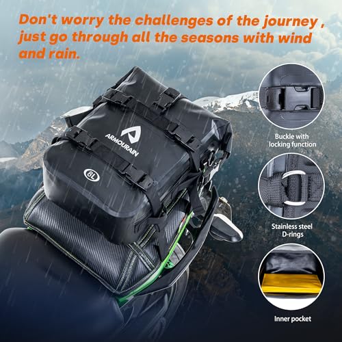 Completamente Impermeabile: Questa borsa è realizzata in resistente materiale PVC 500D con tecnologia di cucitura senza cuciture per fornire una protezione completamente impermeabile. Mantiene i vostri effetti personali asciutti e sicuri anche in caso di pioggia battente in autostrada.