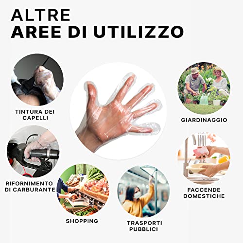 GUANTI MONOUSO PER VARI UTILIZZI ✓ La confezione di guanti in polietilene monouso contiene guanti per la cucina, da pulizia e per la casa, adatti anche come guanti protettivi per tingere i capelli, il giardinaggio o il rifornimento di carburante.