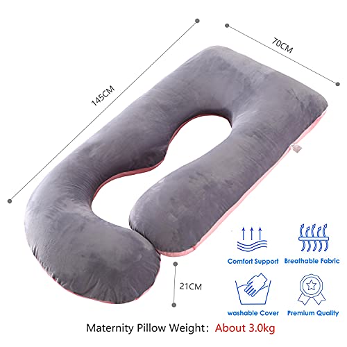 ARNTY Cuscino Premaman per Dormire Cuscino Federa,Cuscino Gravidanza Allattamento Cuscino Federa (Cuscino Federa-Grigio&Rosa)