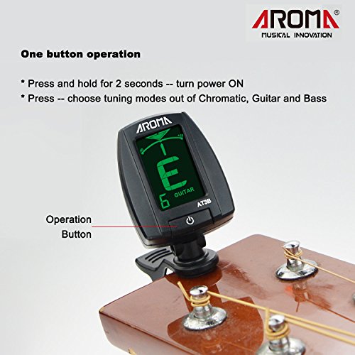 Aroma Clip sintonizzatore cromatico per basso chitarra AT3B Super veloce e preciso schermo a 2 colori Verde in sintonia Bianco di sintonia 360 gradi girevole Auto off in 3 minuti