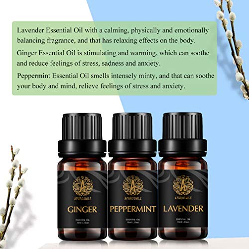 Aromaterapia zenzero olio essenziale Set per diffusore, 3X10ml 100% Pure lavanda Oil essenziale Kit for Humidifier-lavanda, zenzero, menta piperita oli essenziali Set, aromaterapia Peppermint Oli Kit
