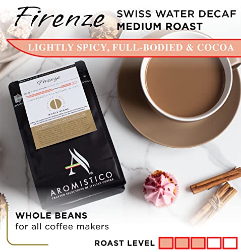 AROMISTICO | Rich Aroma Swiss Water DECAF Medium Roast | Premium Italian Whole COFFEE BEANS | FIRENZE BLEND | Espresso, Moka, French Press, Filter, Aeropress | FULL BODIED, LIGHTLY SPICY & COCOA-Like