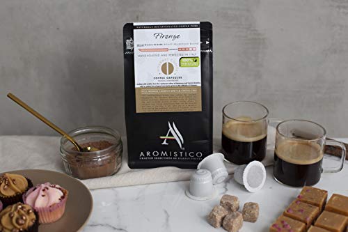 AROMISTICO | Premium Italian Coffee Capsules 100% Compostable | Firenze Blend Swiss Water Decaf | Compatible with Nespresso Machines | Full Bodied, Lightly Spicy & Cocoa-Like