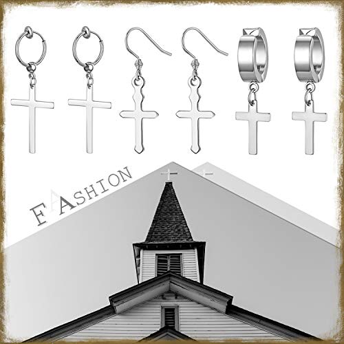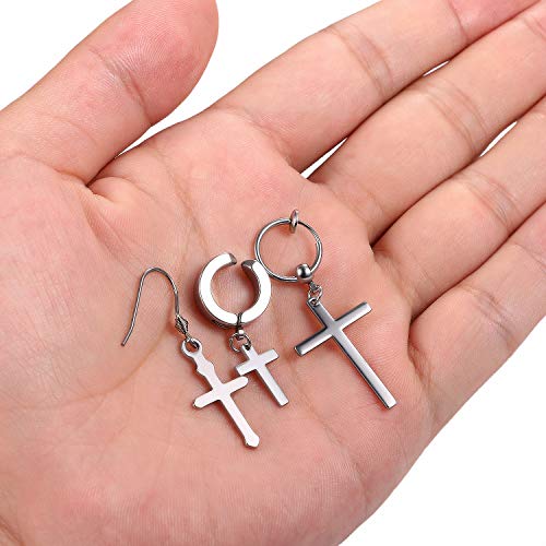 Aroncent 3Pairs Cross Orecchini Orecchini a cerchio Orecchini a bottone Acciaio inossidabile Nero Argento Oro