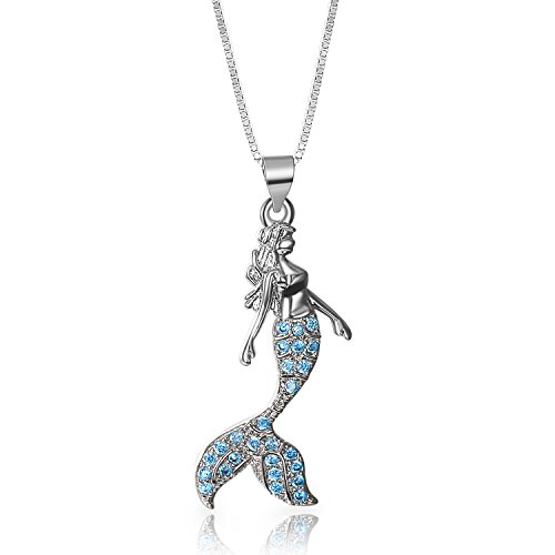 Aroncent, collana da donna con ciondolo a forma di sirenetta, colore argento e blu