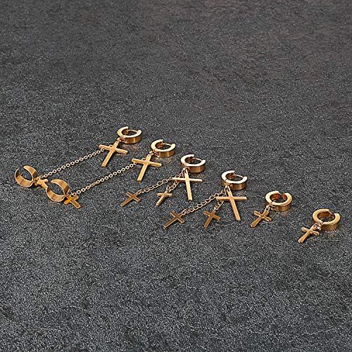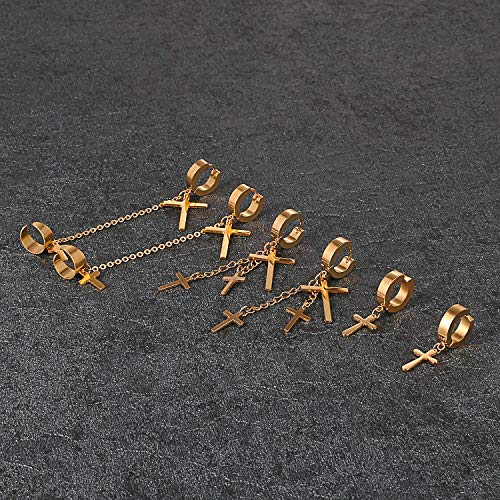 Aroncent 3 Coppia Croce Collana Orecchini a cerchio Set in acciaio inox Orecchini morsetto orecchio Piercing per uomo donna, colore: nero/oro/argento e Acciaio inossidabile