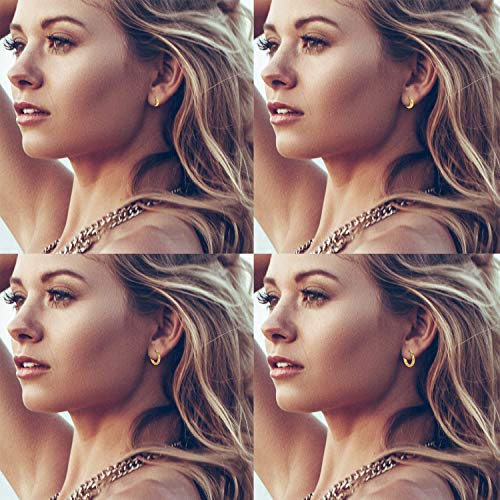Spirazione di design - Classici orecchini a cerchio con chiusura pieghevole in acciaio inossidabile 7/9/12/14 mm di larghezza - in 3 diversi colori. Questi eleganti orecchini classici sono disponibili nei colori di tendenza nero, oro e argento.