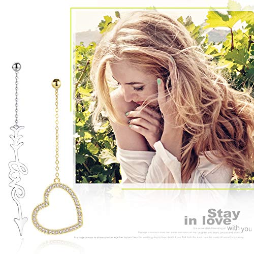 Stile asimmetrico: i nostri orecchini hanno un design asimmetrico unico con forma di cuore e frecce d'amore. È ben decorato con ziron cubico 5A, che lo rende elegante e bello.