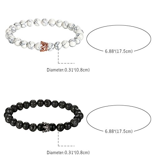 Aroncent King & Queen Crown coppia bracciali lui e lei amicizia 8 mm perline braccialetto buddista cinturino