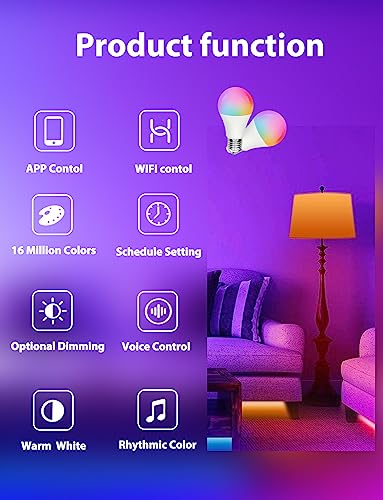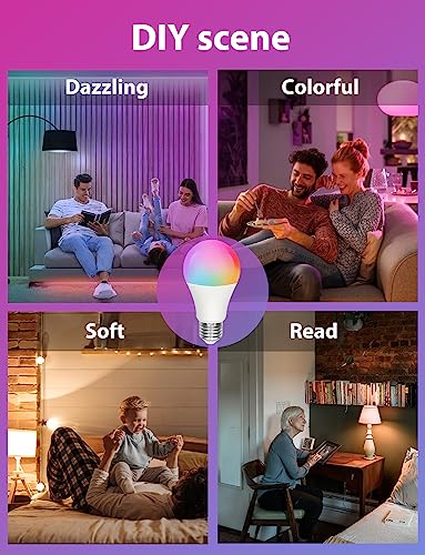 【Compatibile con Google Assistant e Alexa】: controllo vocale, puoi utilizzare il controllo vocale Alexa o Google Assistant per accendere/spegnere la lampadina RGB intelligente o regolare la luminosità o il colore. Supporta solo Wi-Fi a 2,4 GHz.