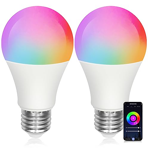 Arotelicht Lampadina Alexa E27, Lampadina LED RGB Intelligente, 10W Cambia Colore Alexa Brine, Lampadina LED WiFi Bluetooth, Lampada LED, 16 Milioni di Colori Fai da Te, Funziona con Google Home, 2Pcs