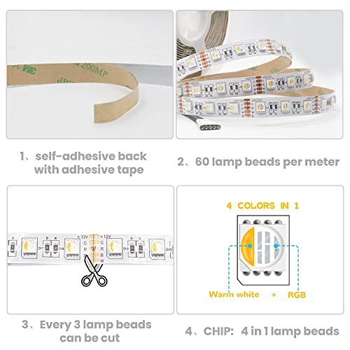 Arotelicht 5m Striscia LED 12V RGBW bianco caldo 5050 catena luminosa cangiante Striscia luminosa fai da te con telecomando WIFI e alimentatore per la decorazione d'interni cucina soggiorno