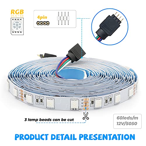 【Installazione pratica】 Ogni striscia led è dotata di un connettore. LED a nastro Il LED può essere tagliato ogni 3 LED lungo i segni di taglio, senza danneggiare il resto del nastro. C'è un nastro 3M sul retro, che può essere autoadesivo.