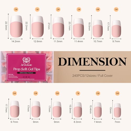 Arousar Unghie artificiali opache, quadrate, 240 pezzi, lunghezza media, colore della pelle, unghie finte, punta bianca da incollare, punta per unghie in acrilico francese, nail art fai da te per