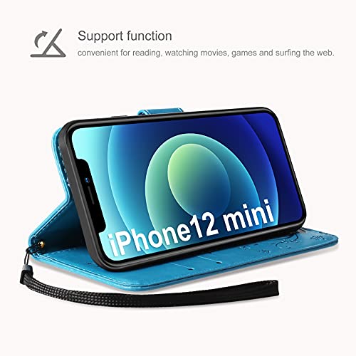 AROYI Cover Compatibile con iPhone 12 Mini, Retro Design Flip Caso in PU Pelle Premium Portafoglio Slot per Schede Chiusura Magnetica Custodia Compatibile con iPhone 12 Mini Blu