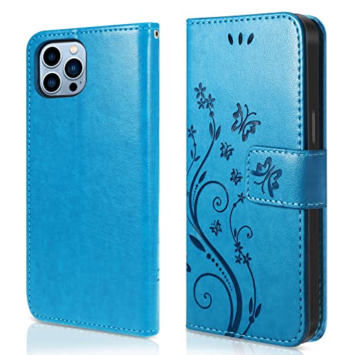 AROYI Cover Compatibile con iPhone 13 PRO, Retro Design Flip Caso in PU Pelle Premium Portafoglio Slot per Schede Chiusura Magnetica Custodia Compatibile con iPhone 13 PRO Blu
