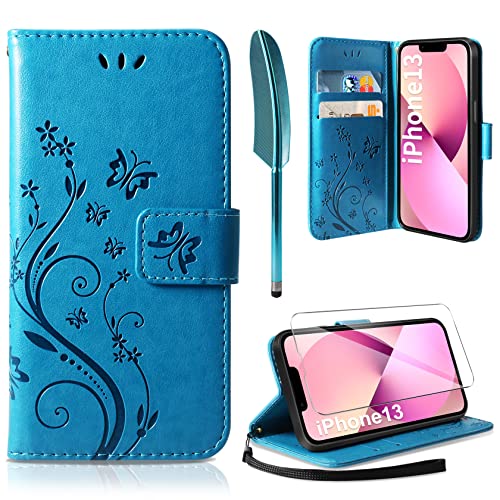 AROYI Cover Compatibile con iPhone 13, Retro Design Flip Caso in PU Pelle Premium Portafoglio Slot per Schede Chiusura Magnetica Custodia Compatibile con iPhone 13 Blu