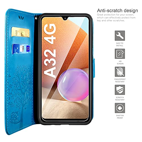 AROYI Cover Compatibile con Samsung Galaxy A32 4G + Pellicola Protettiva, Galaxy A32 4G Pieghevole Supporto PU Flip Cover Magnetica Slot per schede di Protezione per Samsung Galaxy A32 4G - Blu