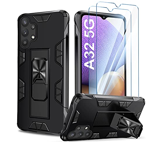 AROYI Cover per Compatibile con Samsung Galaxy A32 5G e 2 Pezzi Vetro Temperato, Custodia Bumper Hard Silicone Anti-Antiurto Anti-Scratch Armor Compatibile con Samsung Galaxy A32 5G Nero
