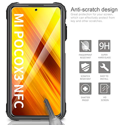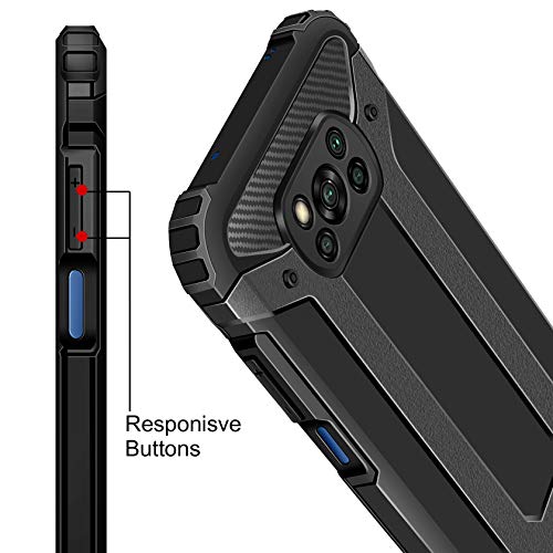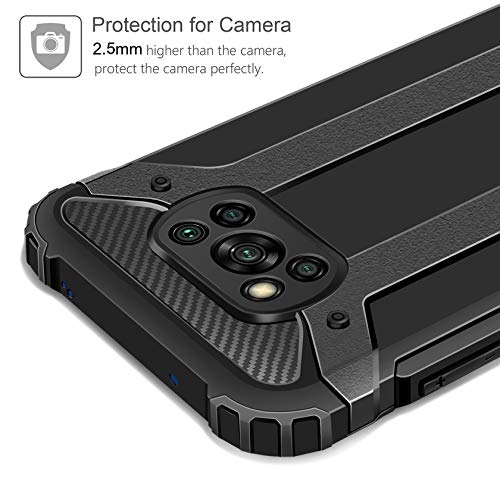 AROYI Cover Compatibile per Xiaomi Poco X3 NFC con Pellicola Protettiva in Vetro Temperato, Custodia Robusto Silicone TPU e PC Cassa Ibrido Doppio Strato Protective Case, Nero