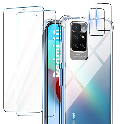 AROYI Cover Compatibile con Xiaomi Redmi 10, 2 Pezzi Vetro Temperato e 2 Pezzi Pellicola Fotocamera, Cover Protettiva Antiurto Morbida e in Silicone, Trasparente