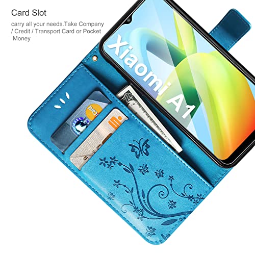 AROYI Cover Compatibile con Xiaomi Redmi A1 e Vetro Temperato, Retro Design Flip Caso in PU Pelle Premium Portafoglio Slot per Schede Chiusura Magnetica Custodia Blu