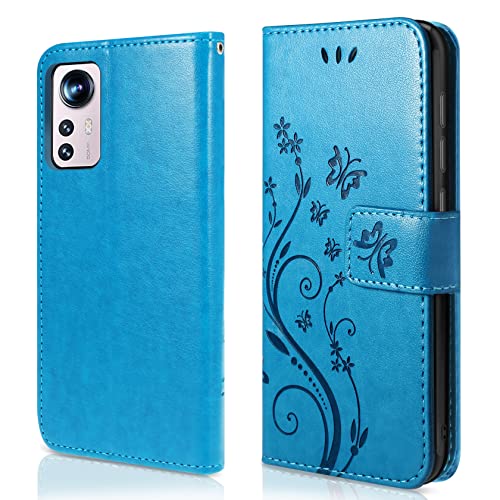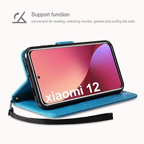 AROYI Cover Compatibile con Xiaomi Mi 12 /12X, Retro Design Flip Caso in PU Pelle Premium Portafoglio Slot per Schede Chiusura Magnetica Custodia Blu