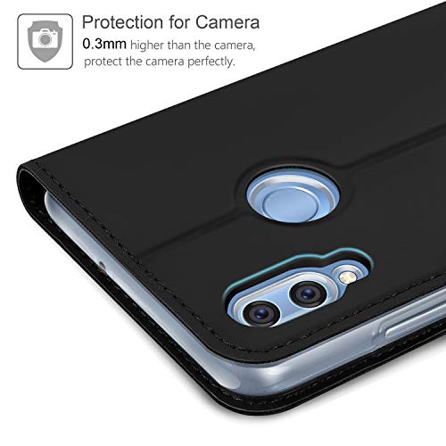 AROYI Cover Huawei Honor 10 Lite Nero, Custodia a di PU Ecopelle Flip Cover Silicone TPU con Slot per schede Kickstand Fuction Protettiva Caso per Huawei Honor 10 Lite
