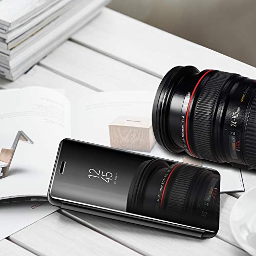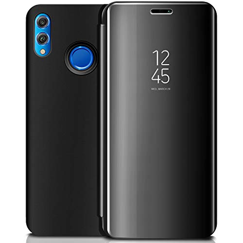 AROYI Cover Huawei Honor View 10 Lite Specchio,Custodia Honor View 10 Lite Clear View Standing Mirror Magnetic con Flip Hard-Anti-Scratch Protective Cover per Huawei Honor View 10 Lite/Honor 8X Nero