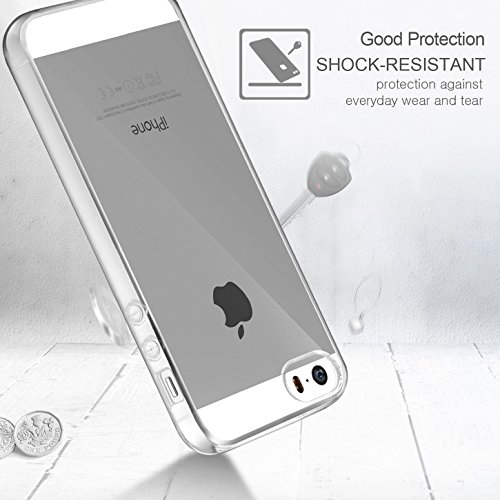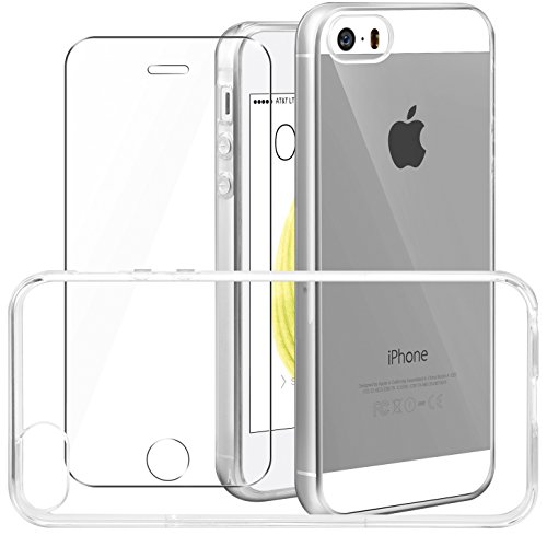 AROYI Cover iPhone 5/SE/5s Custodia Silicone + [Pellicola Protettiva in Vetro Temperato], Silicone TPU Case Sottile Flessibile Trasparente Clear Custodia per iPhone 5/SE/5s