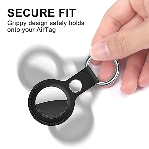 AROYI Cover Portachiavi Compatibile con AirTag, Custodia per AirTag 2021 Bluetooth Tracker, Antigraffio Custodia Protettiva in Vera Pelle 1 pezzi, Nero