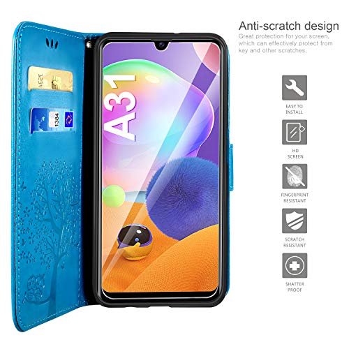 AROYI Cover Samsung Galaxy A31 + Pellicola Protettiva, Galaxy A31 Pieghevole Supporto PU Flip Cover Magnetica Slot per schede di Protezione per Samsung Galaxy A31 - Blu