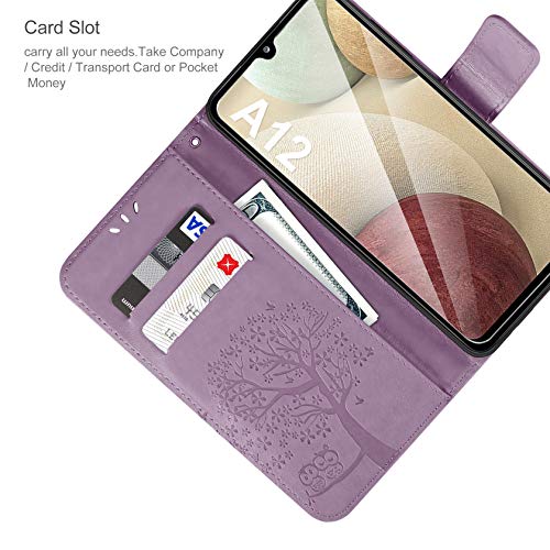 AROYI Cover Samsung Galaxy A12 + Pellicola Protettiva, Galaxy A12 Pieghevole Supporto PU Flip Cover Magnetica Slot per schede di Protezione per Samsung Galaxy A12 (Viola)