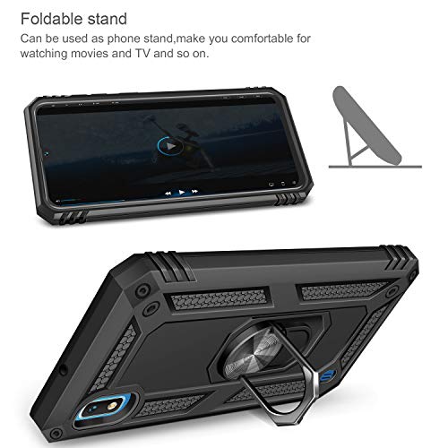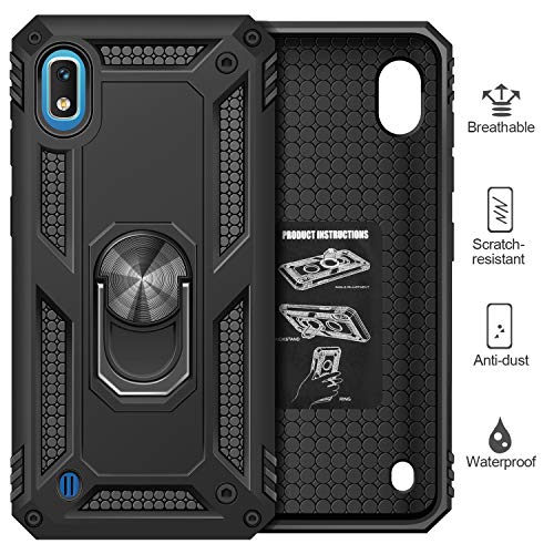 AROYI Cover Samsung Galaxy A10 + Vetro Temperato, 360° Girevole Ring Supporto Dual Layer TPU PC Bumper Silicone Case Custodia per Samsung Galaxy A10 Nero