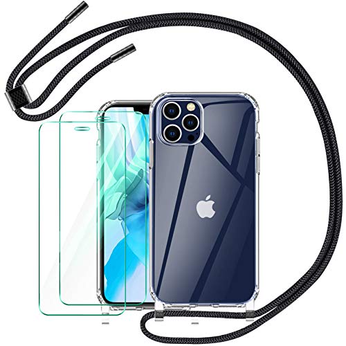 AROYI - Custodia per cellulare compatibile con iPhone 12 e iPhone 12 Pro, 2 pezzi, in vetro temperato, colore: Nero