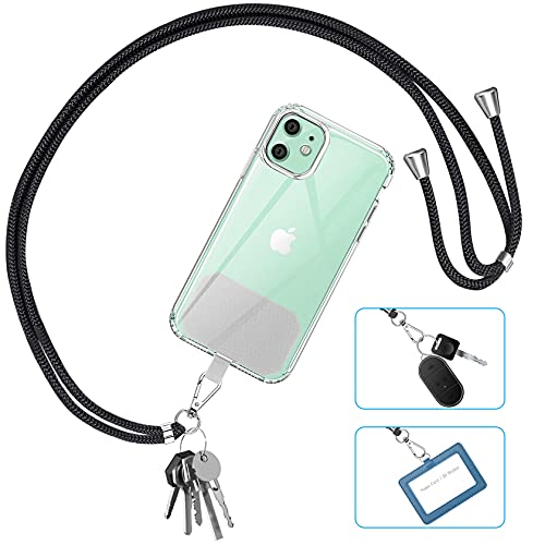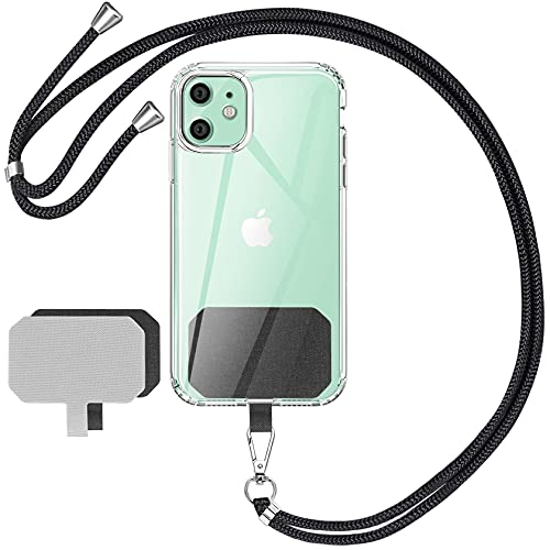 AROYI 2 Pezzi Toppe con Cordino per Telefono da Collo, Regolabile Cordino Tracolla Universale Catena per Cellulare Compatibile con La Maggior Parte degli Smartphone - Nero